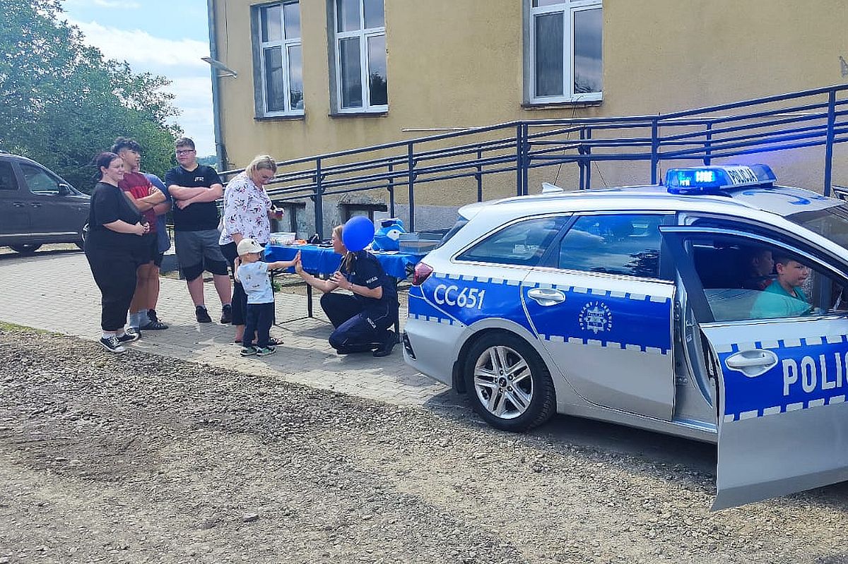 Policjanci wyposażeni w sprzęt służbowy, z atrakcjami dla dzieci, uczestniczyli w pikniku rodzinnym Stalmierzu. Jego organizatorem było Koło Gospodyń Wiejskich Stalmierzanki a patronat nad wydarzeniem objął Wójt Gminy Chrostkowo.