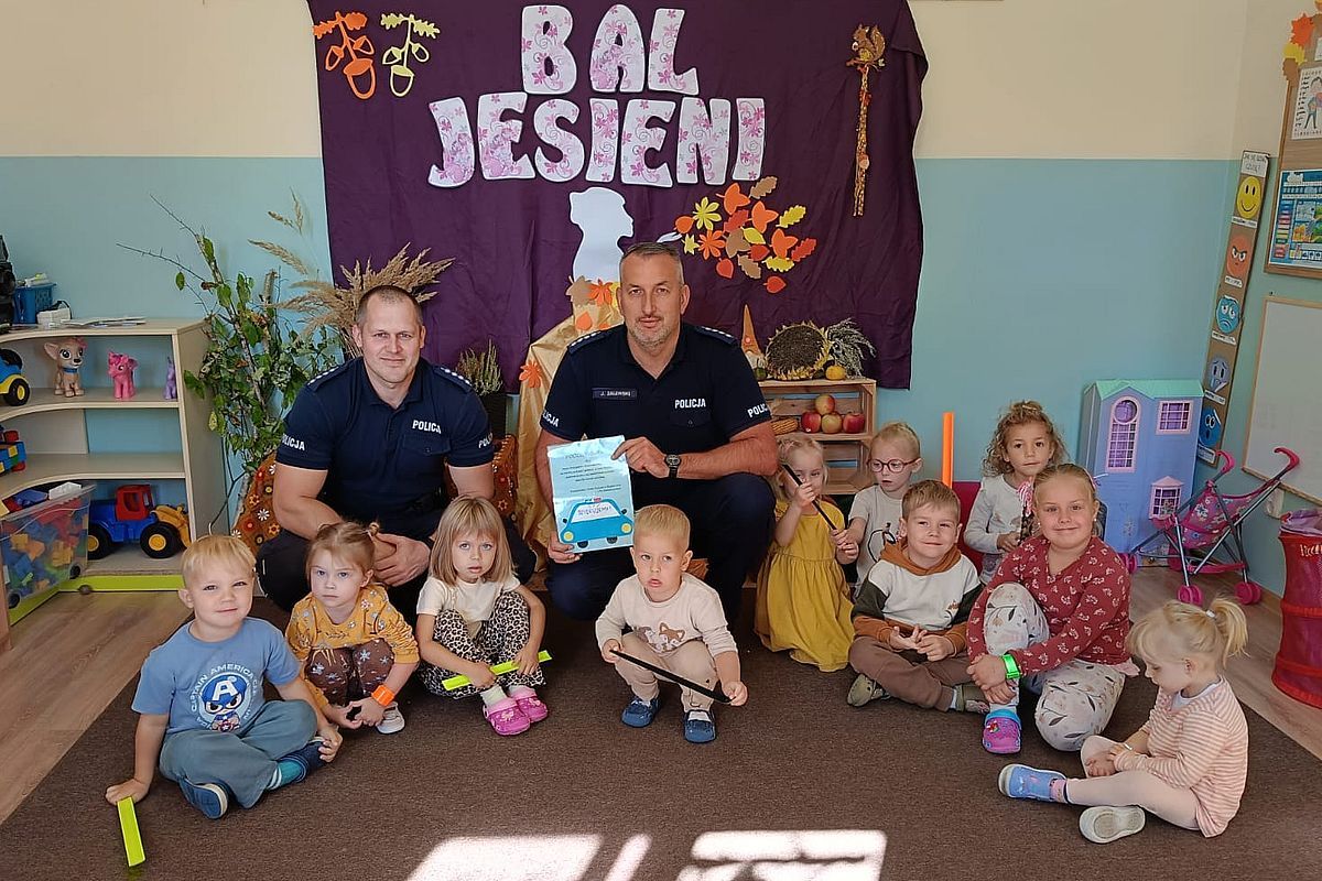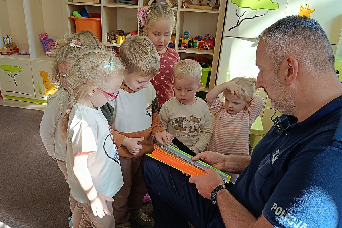 W ramach akcji „Bezpieczna droga do szkoły” policjanci zajmujący się profilaktyką społeczną spotkali się z maluszkami z Zespołu Przedszkoli Miejskich nr 1 im. Czesława Janczarskiego w Lipnie i ze skępskiego „Klubu malucha”. Dzieci usłyszały o pracy w niebieskim mundurze i poznały zasady bezpiecznego przechodzenia przez jezdnię.