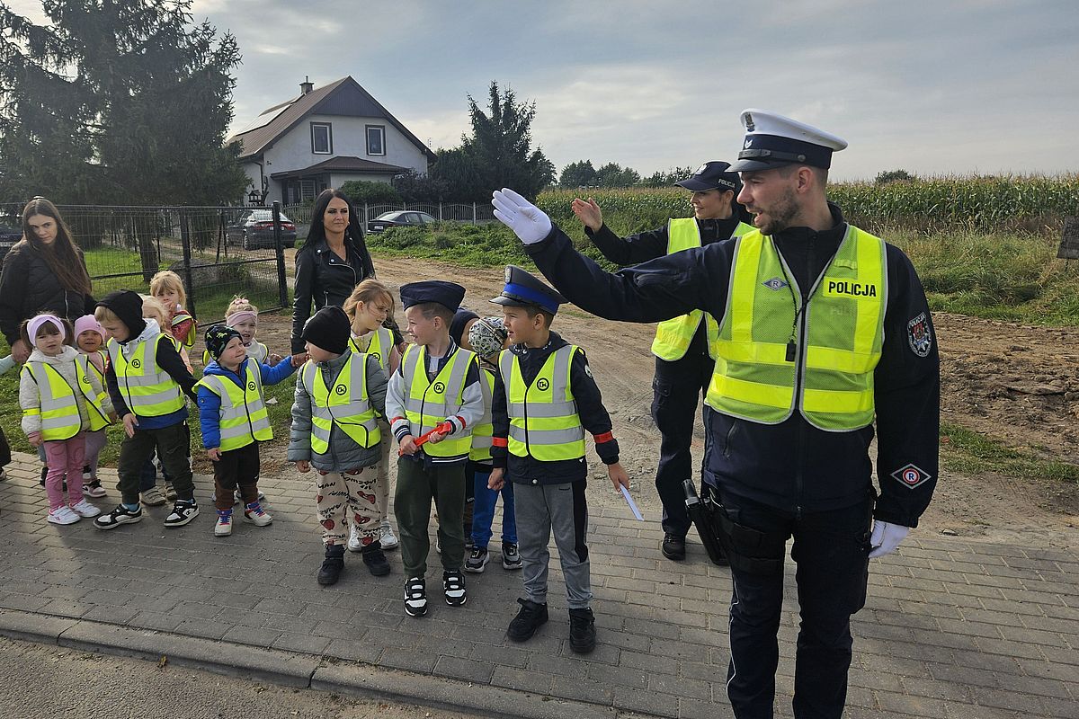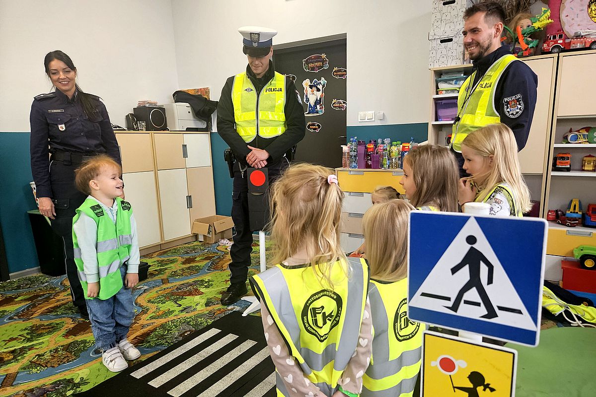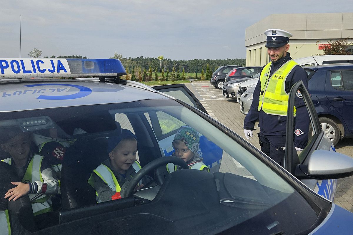 Wcześniej przeprowadzili z maluchami lekcję profilaktyczną i opowiedzieli im o swojej pracy. Dzieci oglądały wyposażenie Funkcjonariuszy i ich sprzęt do pracy, no i oczywiście radiowóz.