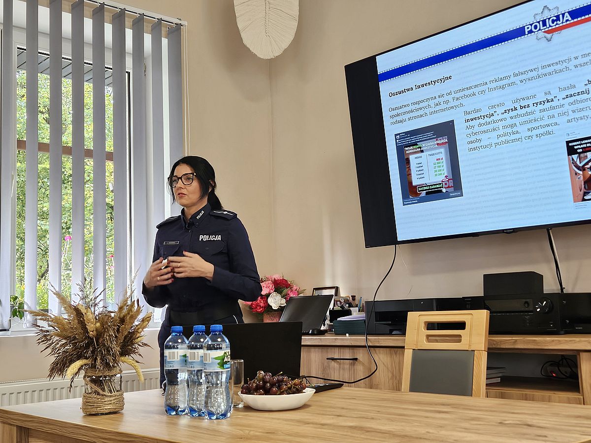Następnie omówiła „stare i nowe” metody wyłudzania pieniędzy. Razem z policjantem wydziału kryminalnego starali się przekazać schematy działania oszustów i omawiali przypadki takich przestępstw z rejonu powiatu lipnowskiego.