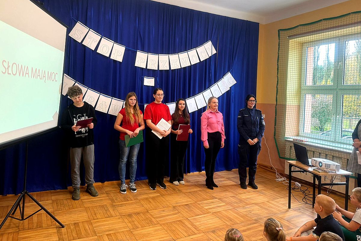Pod hasłem „Słowa mają moc” w ramach kampanii „Dzieciństwo bez przemocy, wczoraj (27.10.2025), „odbyło się spotkanie w Szkole Podstawowej w Trzebiegoszczu.