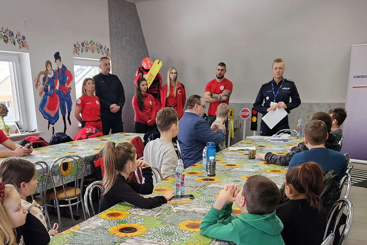 Wypoczynek podczas ferii powinien dawać radość oraz wytchnienie od nauki szkolnej i rutynowych zajęć, ale przede wszystkim musi być bezpieczny. Niezależnie od tego czy spędzamy czas na zewnątrz czy w domu trzeba pamiętać o tym gdzie i w jaki sposób wolno się bawić. Te ważne zasady podczas dzisiejszego spotkania przypominali dzieciom ze Skępego policjanci i woprowcy.