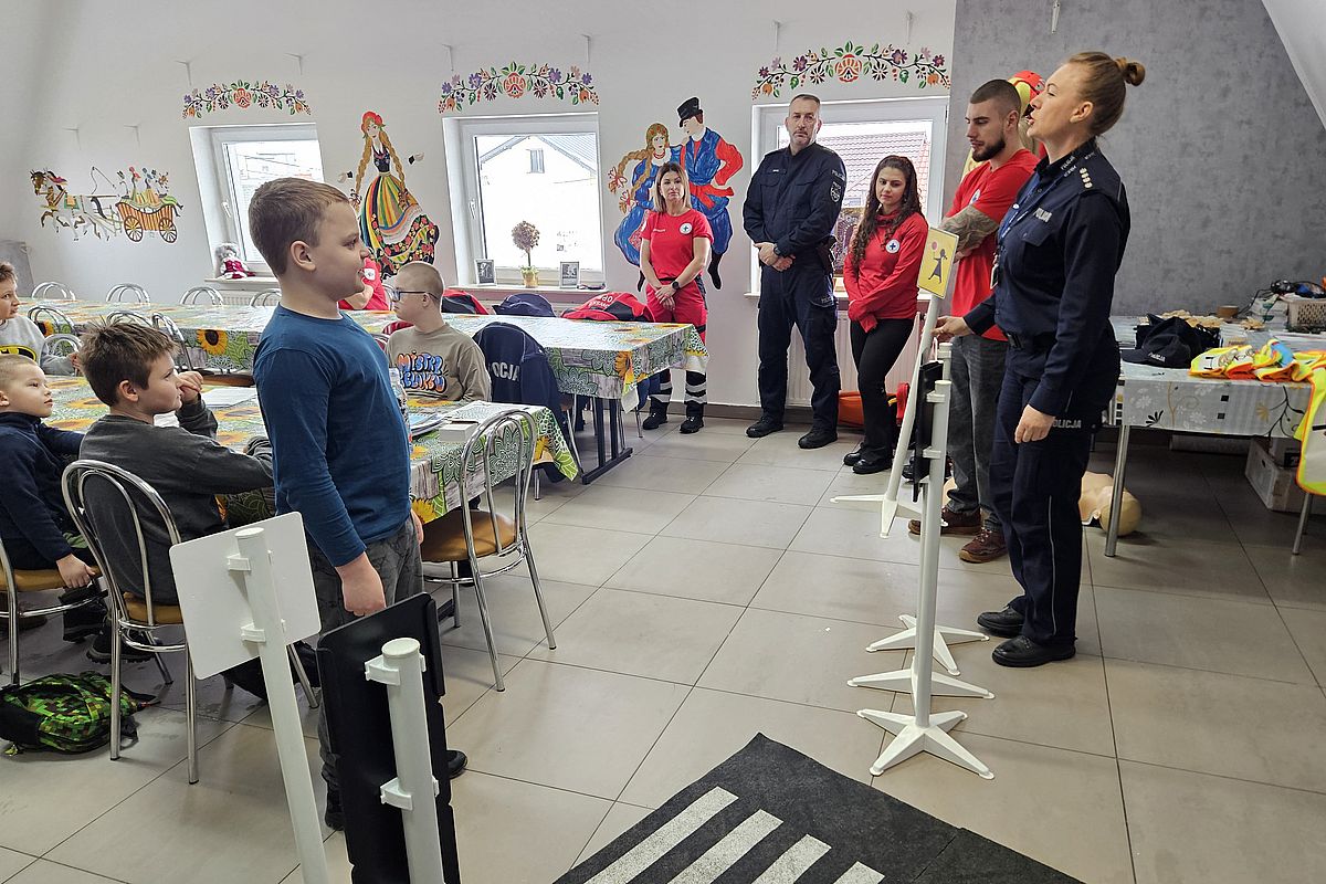 Policjanci i woprowcy opowiadali dzieciom o bezpieczeństwie podczas trwających ferii