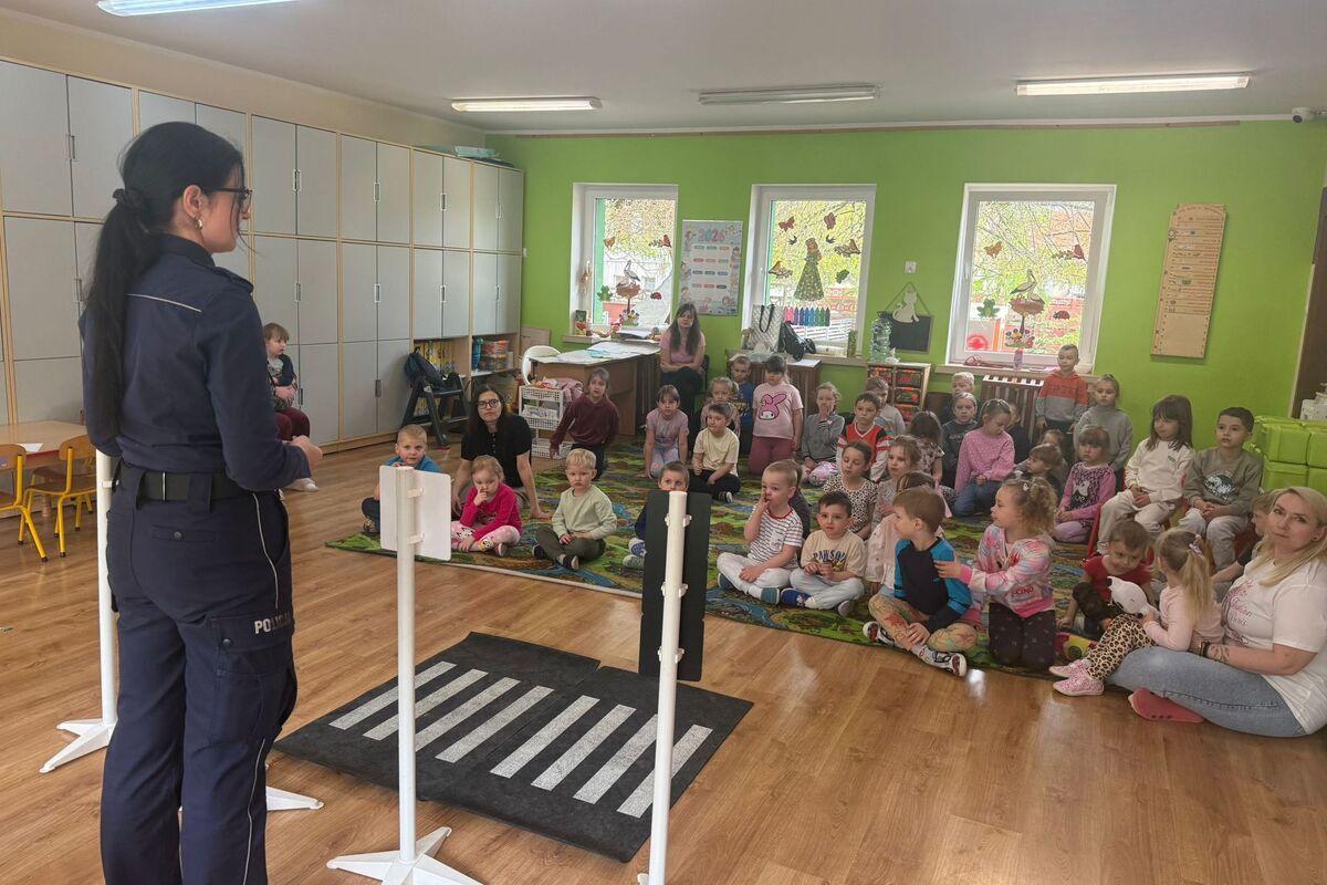 O zasadach bezpieczeństwa na drodze opowiedziała wczoraj (23.04.2026) dzieciom z Przedszkola w Parku policjantka z lipnowskiej komendy.